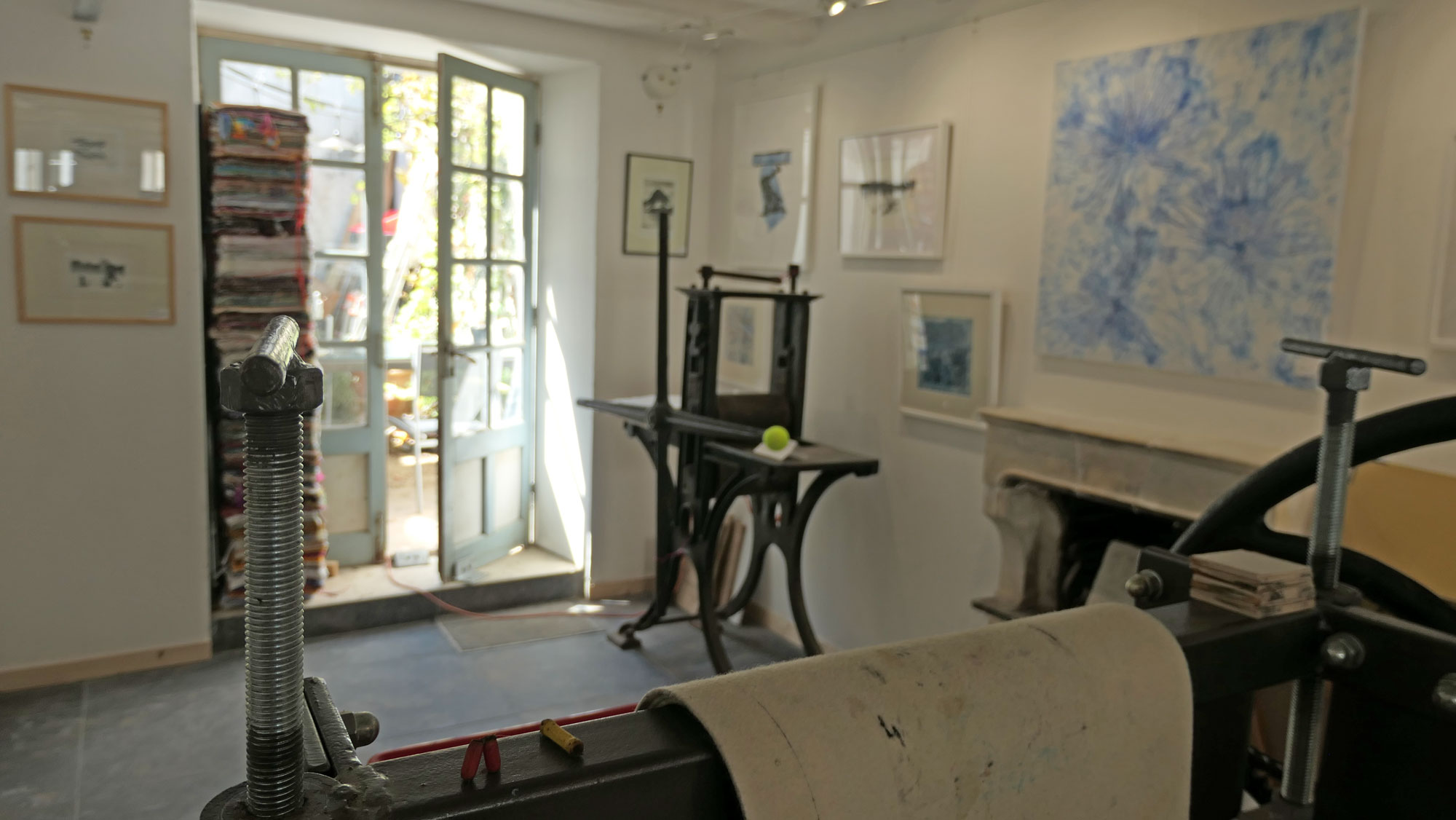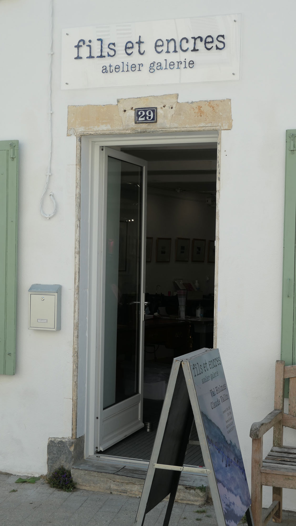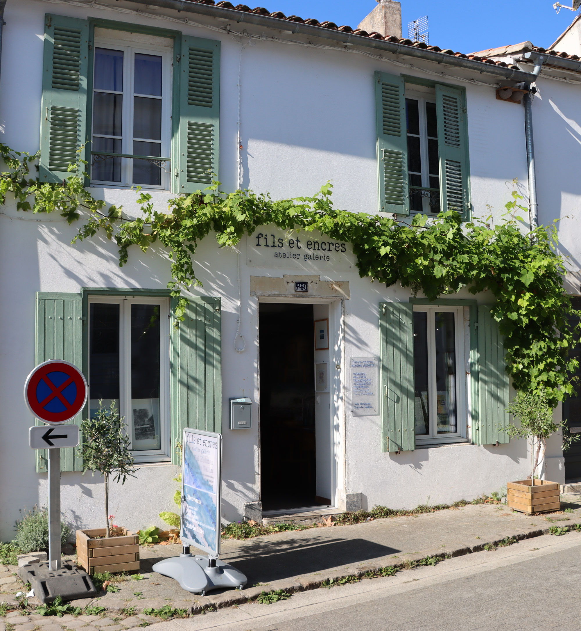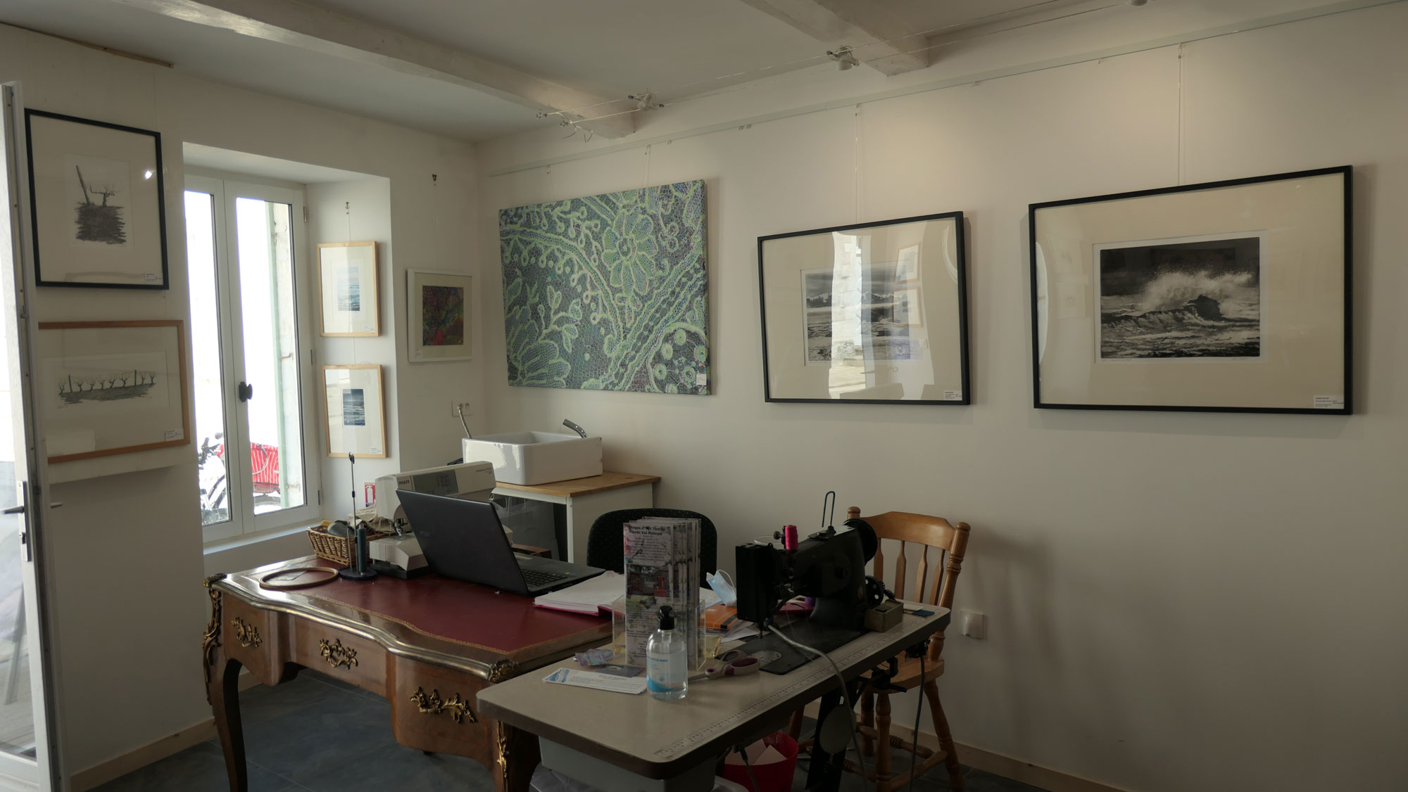 Fils et Encres (Thread and ink) is a new gallery and studio space near the old market in La Flotte on the Ile de Ré, France. The address is 29, Rue du Marché, 17630 La Flotte. The gallery features work made with textiles and thread, and printing in a wide variety of techniques: etching, lithography, collagraphy, mono-printing with dyes and digital print.