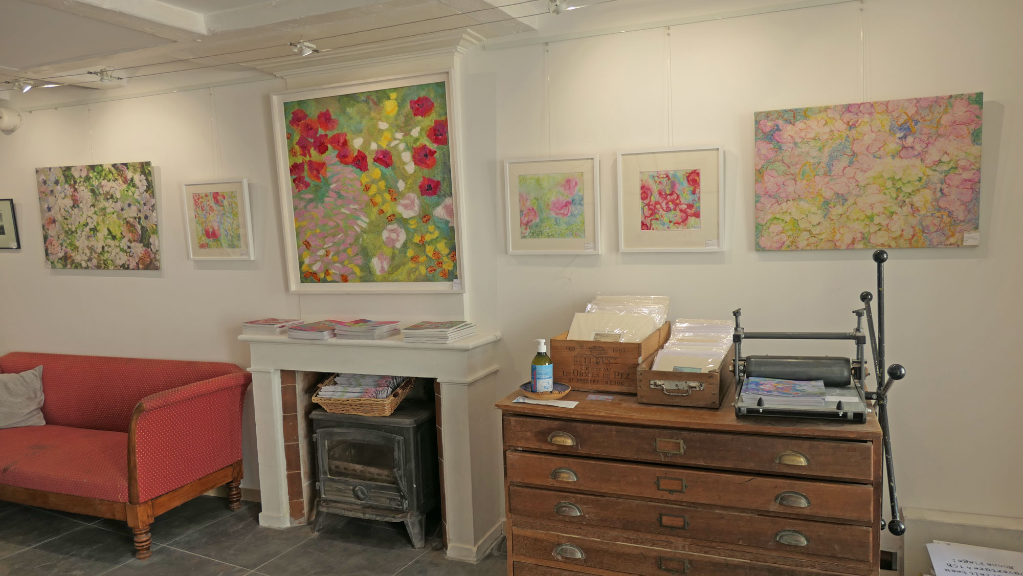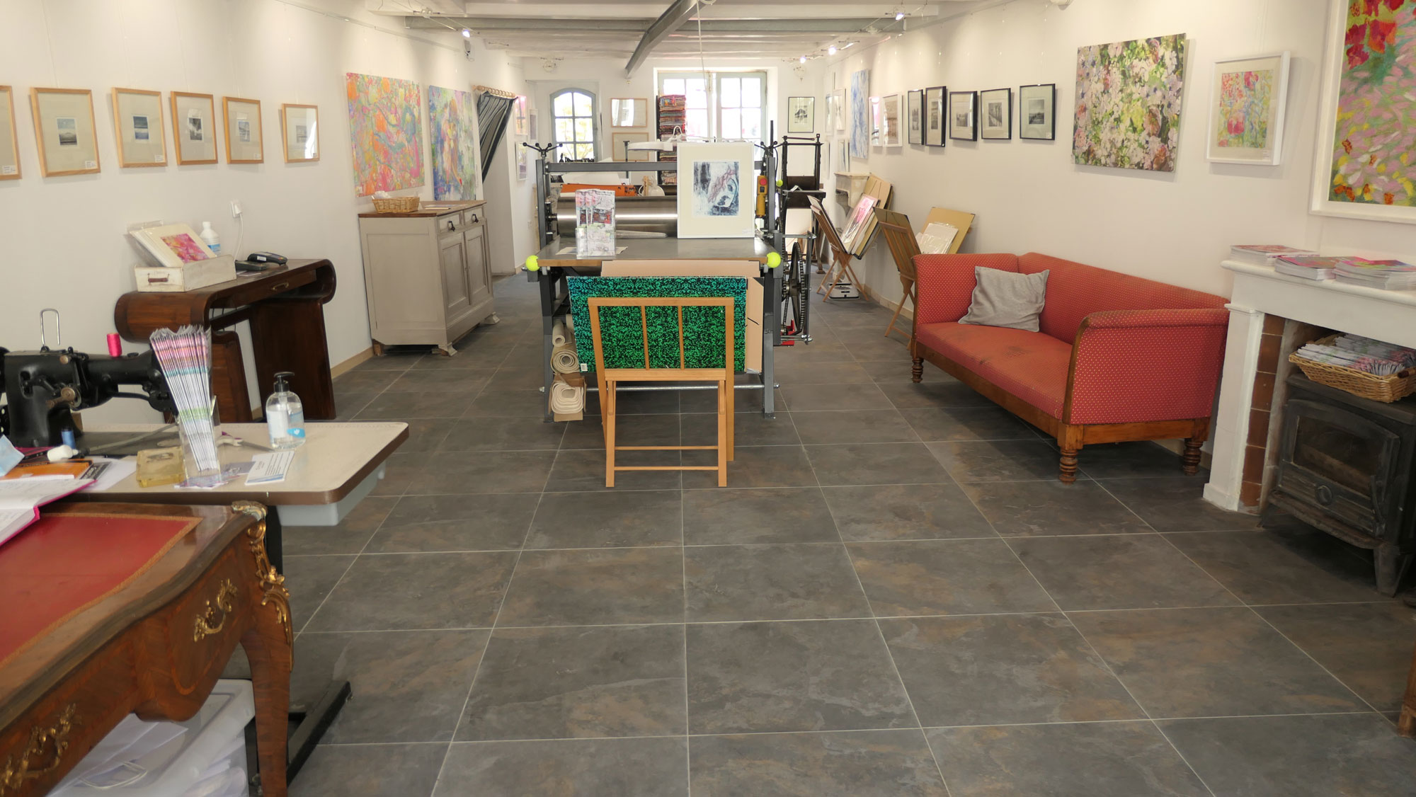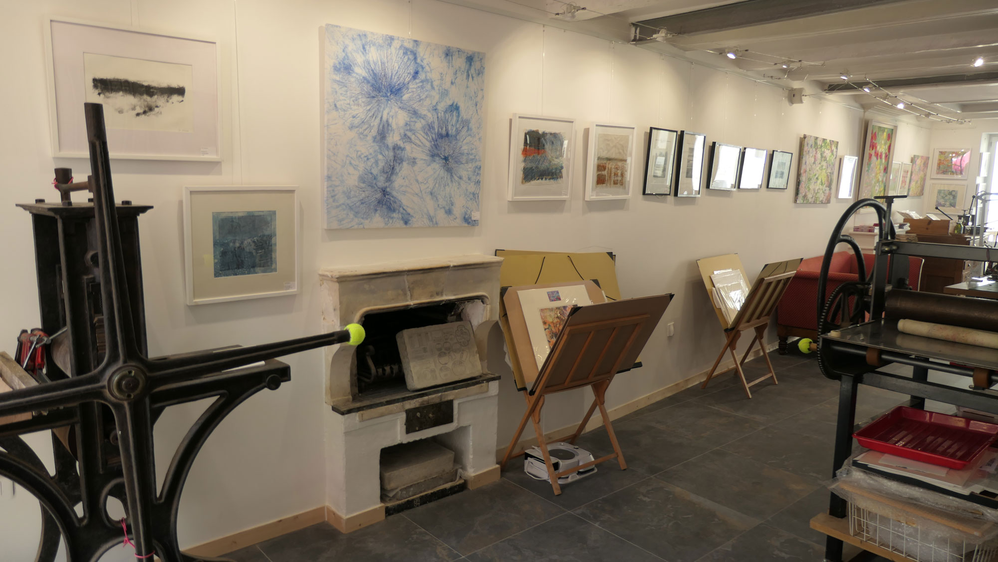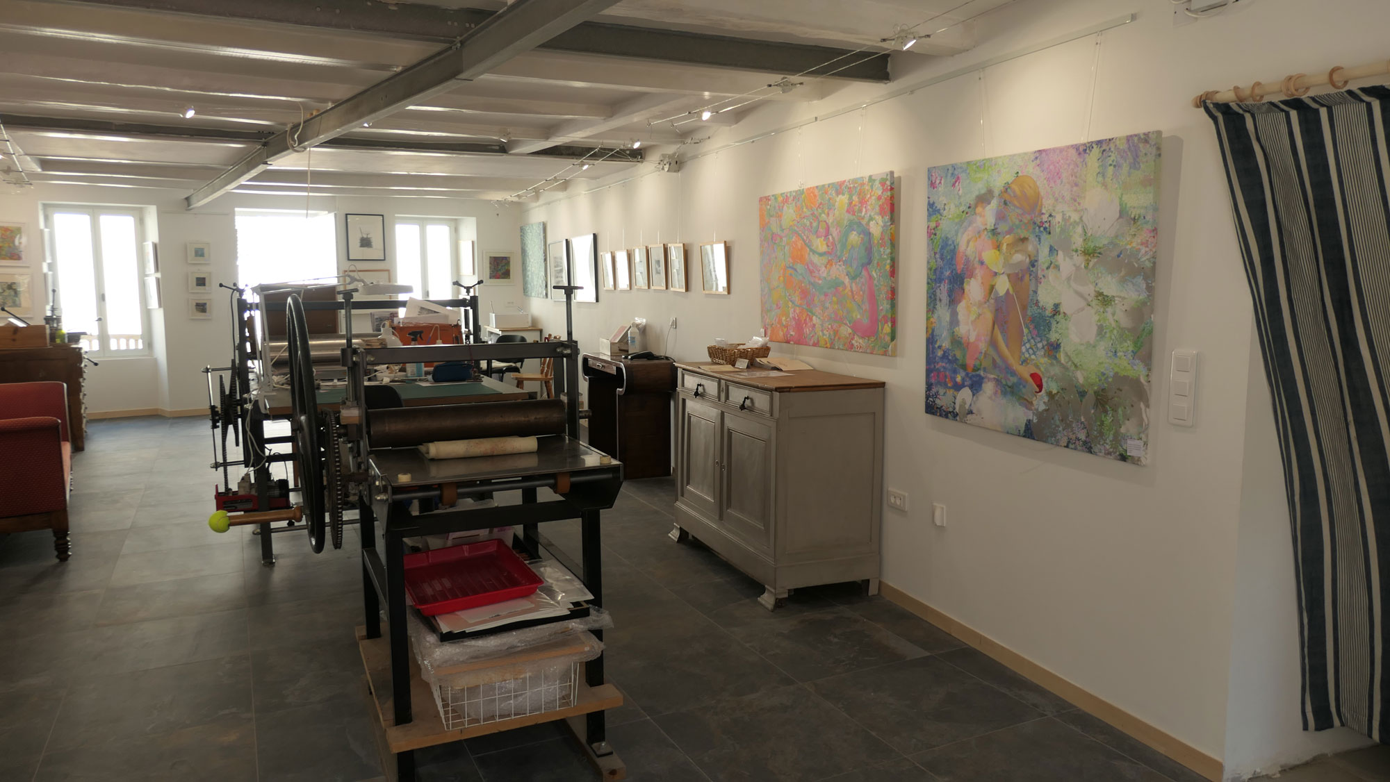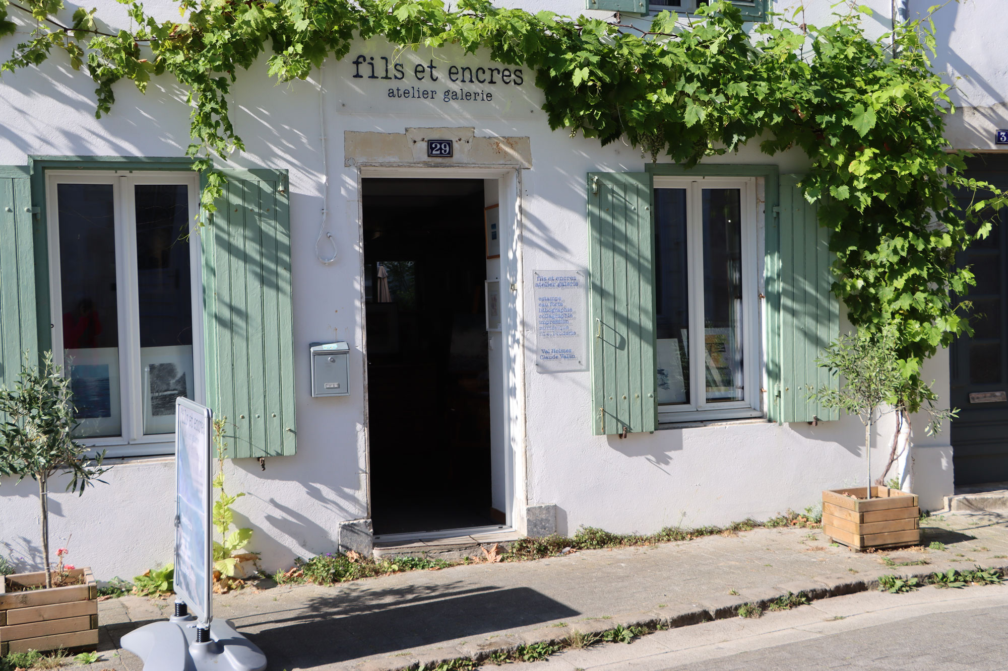 Fils et Encres (Thread and ink) is a new gallery and studio space near the old market in La Flotte on the Ile de Ré, France. The address is 29, Rue du Marché, 17630 La Flotte. The gallery features work made with textiles and thread, and printing in a wide variety of techniques: etching, lithography, collagraphy, mono-printing with dyes and digital print.